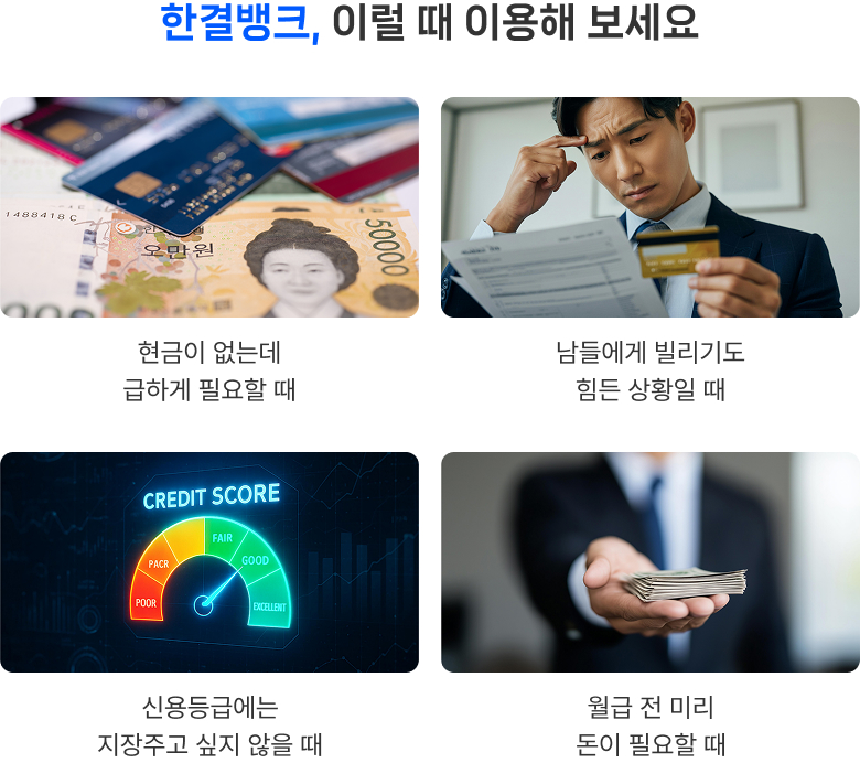 (단, ‘한결뱅크’는 대부업서비스가 아니기에 한도내에서만 가능하다는 점 참고 부탁드립니다.)