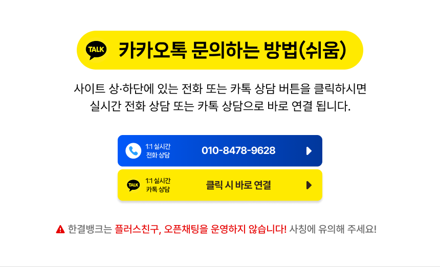 1. ‘한결뱅크’ 공식 홈페이지를 통해 카카오톡 및 실시간 상담원 연결
