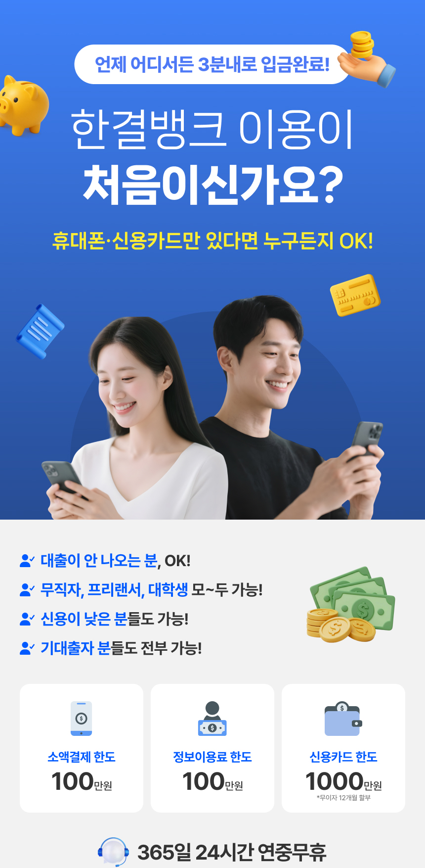 그리고 한도는 매달 한도가 초기화되기 때문에 한도만 있다면 이용 가능한 서비스입니다.